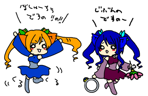 とりあえずオレンジのはミカン、青いのはシュークリームが好物。